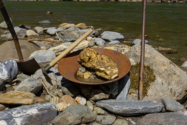 At first, gold was not mined, but simply found in the form of nuggets – in so-called secondary deposits such as riverbeds or gold-bearing debris brought to light by erosion and weather effects. Such gold deposits are called secondary deposits, and the precious metal that is relatively easy to extract there is called placer gold or stream gold.