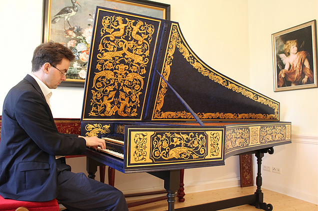 Since 2008, artists Aleksandra and Alexander Grychtolik have been ambassadors of harpsichord music, and with great success. As soloists and with their “Deutsche Hofmusik” ensemble, they perform at leading classical music festivals worldwide, inspiring audiences and critics alike. In 2017, the major German daily newspaper Süddeutsche Zeitung attested to Alexander Grychtolik’s ability to “speak Bach perfectly”. Because audiences are moved by the baroque improvisations and are often as interested in the Grychtoliks’ musical instruments as in the music itself, the gilding of one of their valuable, beautifully crafted concert harpsichords was an obvious idea.