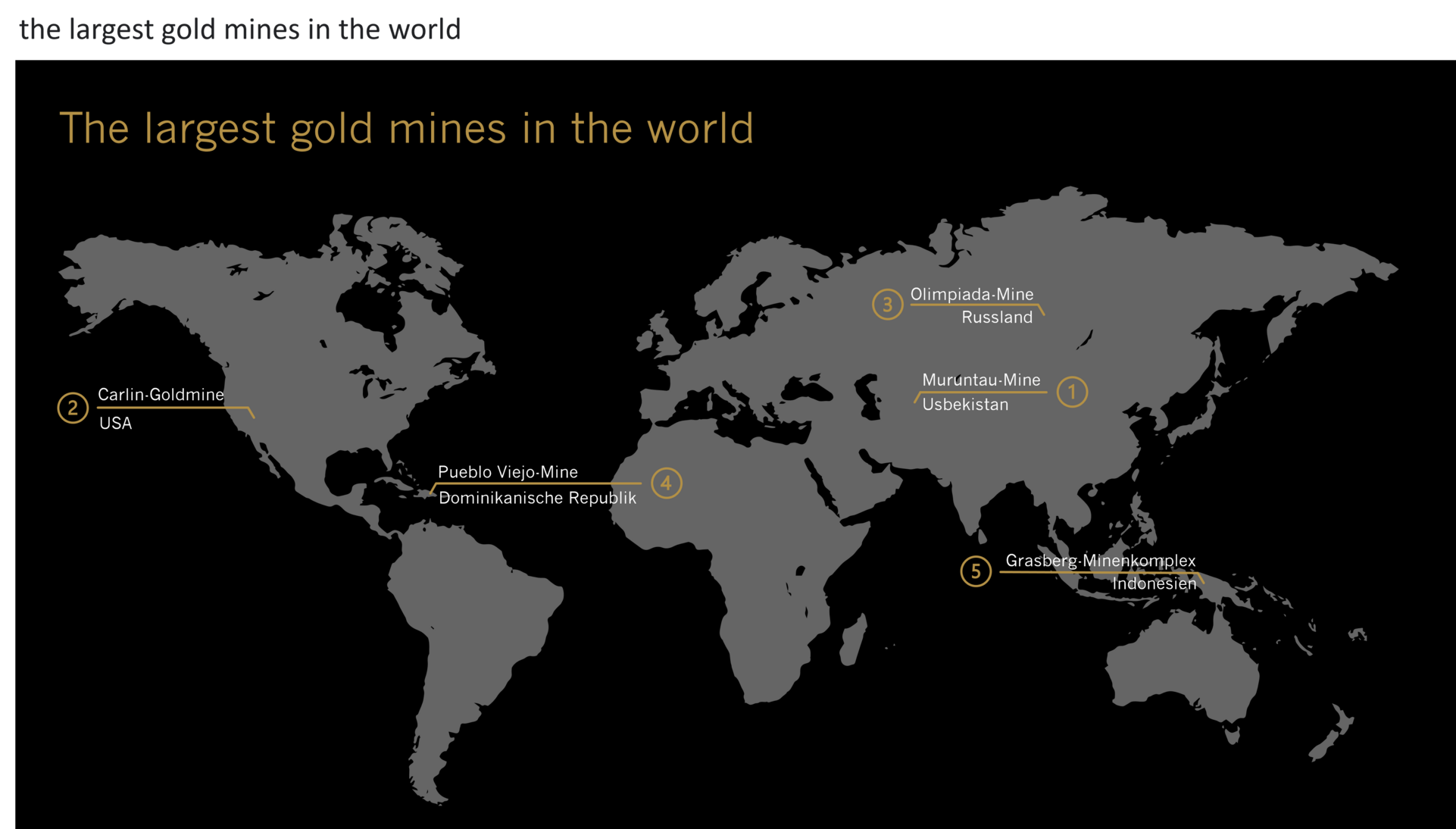 What are the world’s largest gold mines? Where are they located and what is their annual production volume? And what is the future of gold mining in times of climate change?)