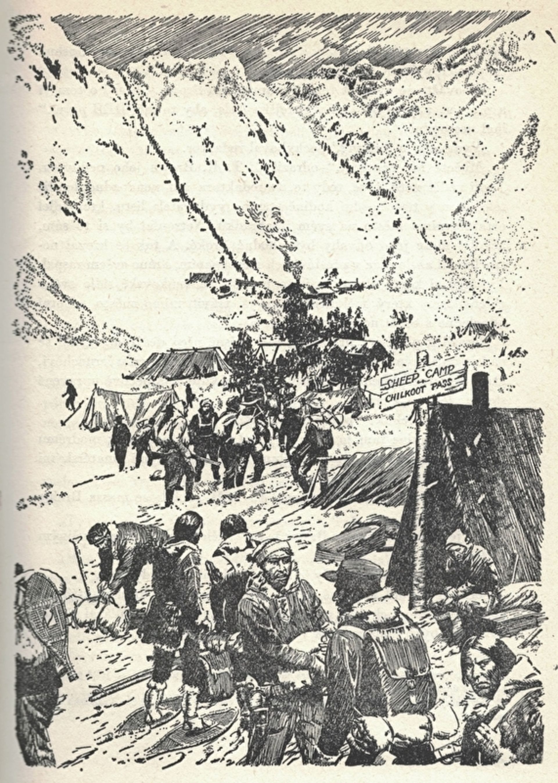Auch der äußerste Norden der USA wurde nicht von Massenimmigration durch Goldsucher verschont: Ab 1896 strömten mehr als 100.000 Goldsuchende an den Klondike River nahe der Stadt Dawson. Glücksjäger wie diese hatten in der Zwischenzeit den abfälligen Spitznamen „Stampeders“ erhalten, angelehnt an den Begriff „Stampede“, der herdenhafte Fluchtbewegungen von Büffeln und Rindern bezeichnet. Damit sich menschliche Tragödien wie bei den vorigen Goldräuschen auf US-Gebiet nicht wiederholten, verpflichtete die US-Regierung jeden Goldsucher zur Mitführung von Ausrüstung und Lebensmitteln für ein Jahr.